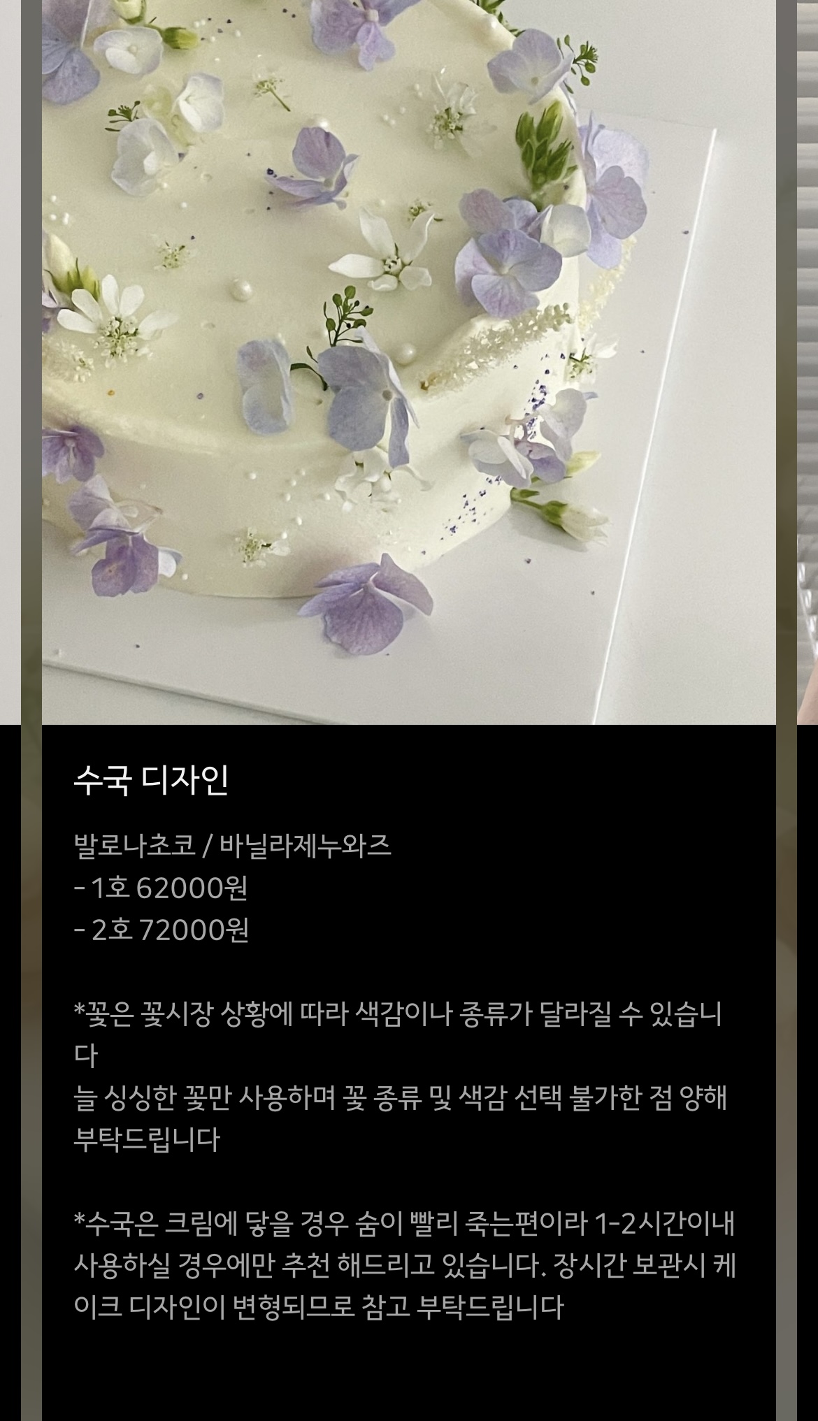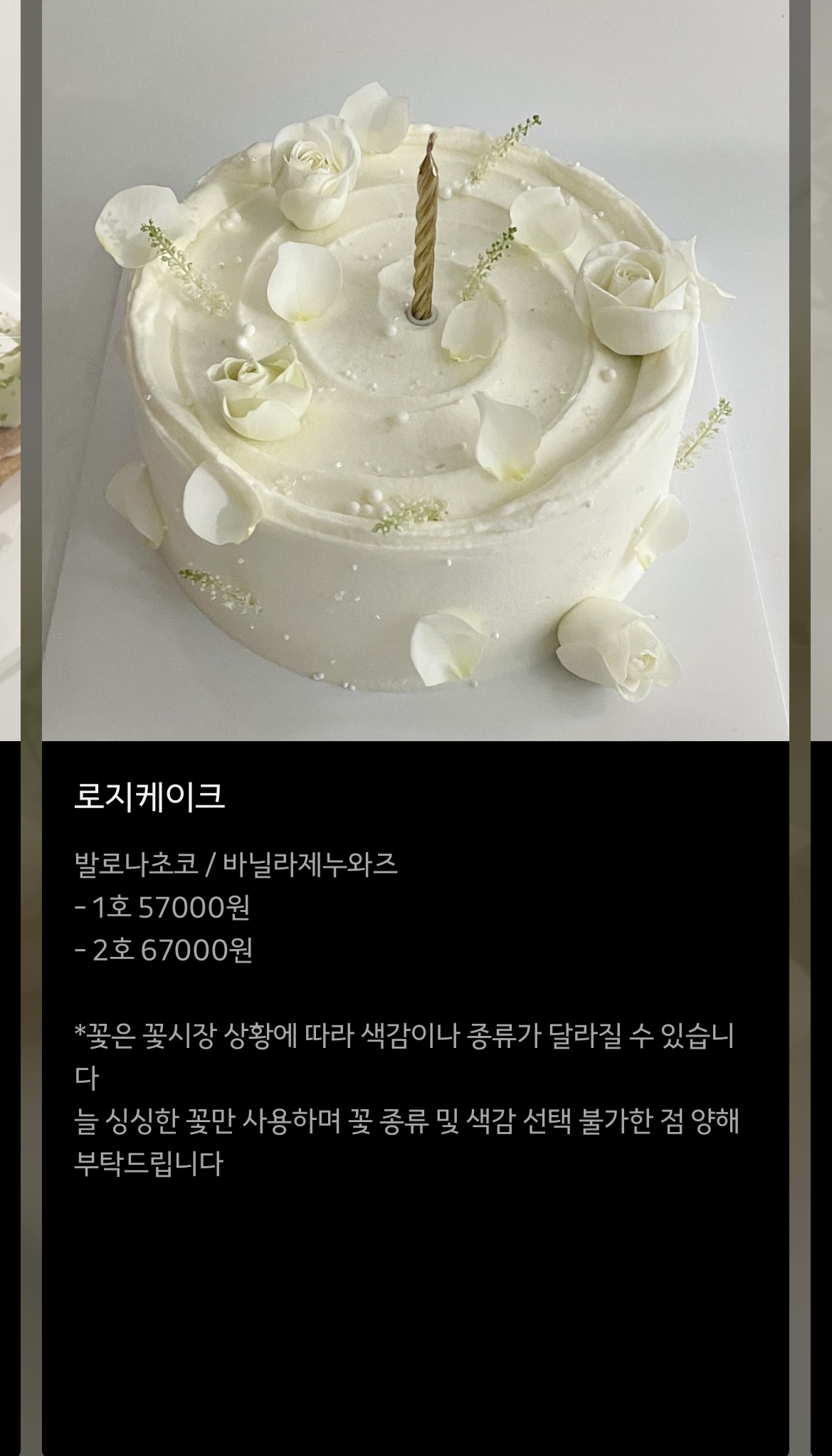 수국 디자인과 로지 케이크 두개 중 고민하다가 로지 케이크로 결정!