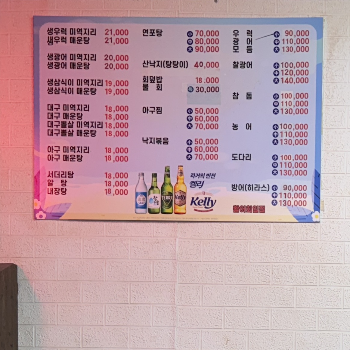생우럭과 고니도 듬뿍 들어있다